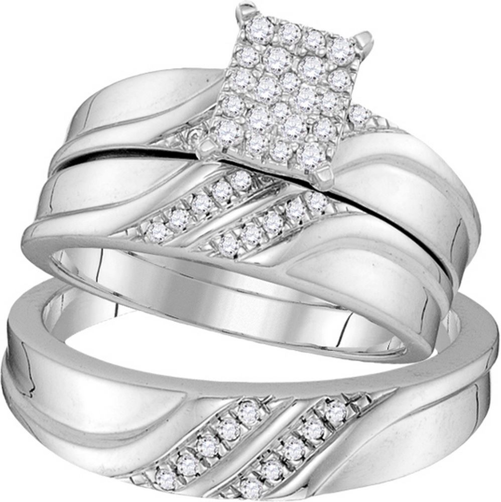 REF-59M8A ---- 0.35 CTW Diamond Cluster Matching Trio His & Hers Engagement Ring 10K White Gold - SKU: GD109958