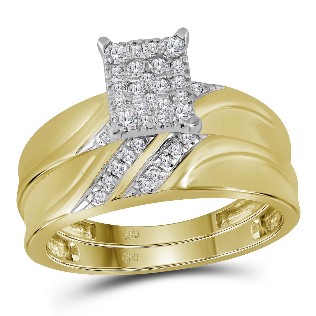 REF-48N7F- SKU: GD109957 ---- 0.35 CTW Diamond Cluster Matching Trio His & Hers Ring 10KT Yellow Gold