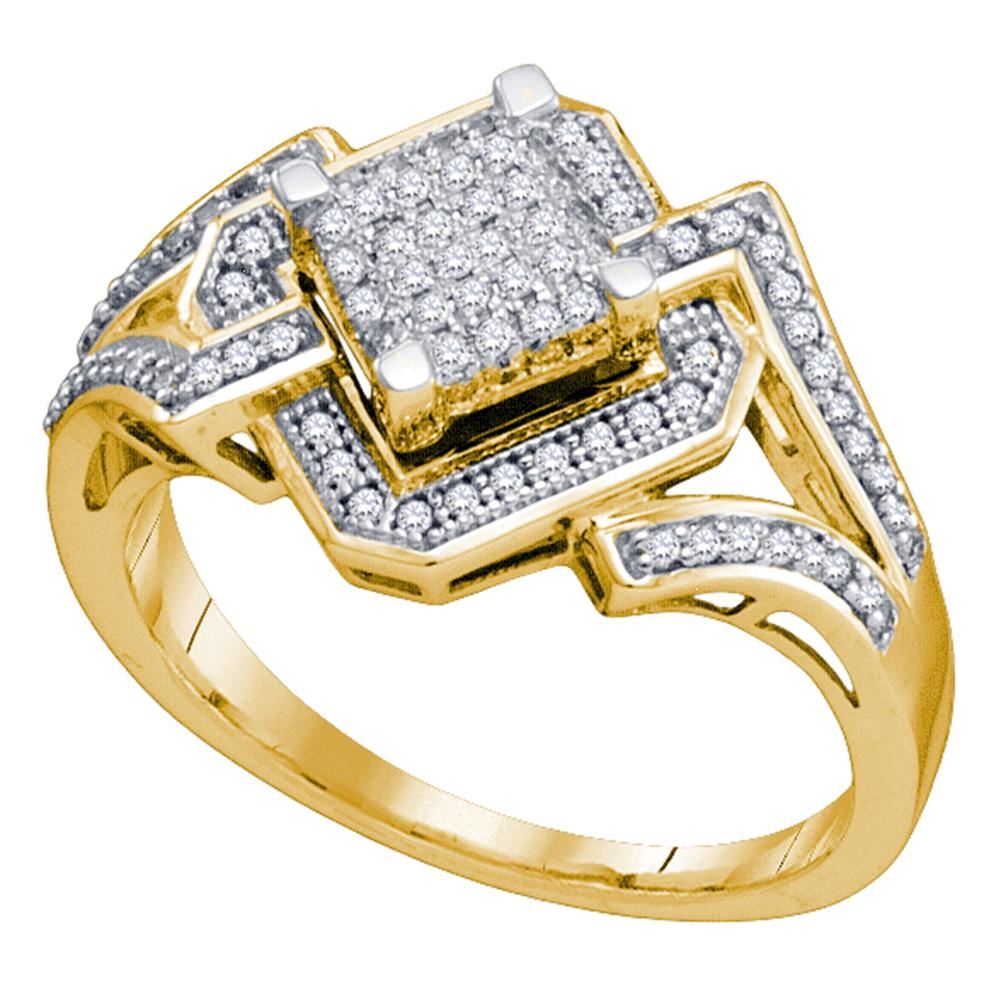 REF-41K9W- SKU: GD75454 ---- 0.35 CTW Diamond Diagonal Square Cluster Ring 10KT Yellow Gold