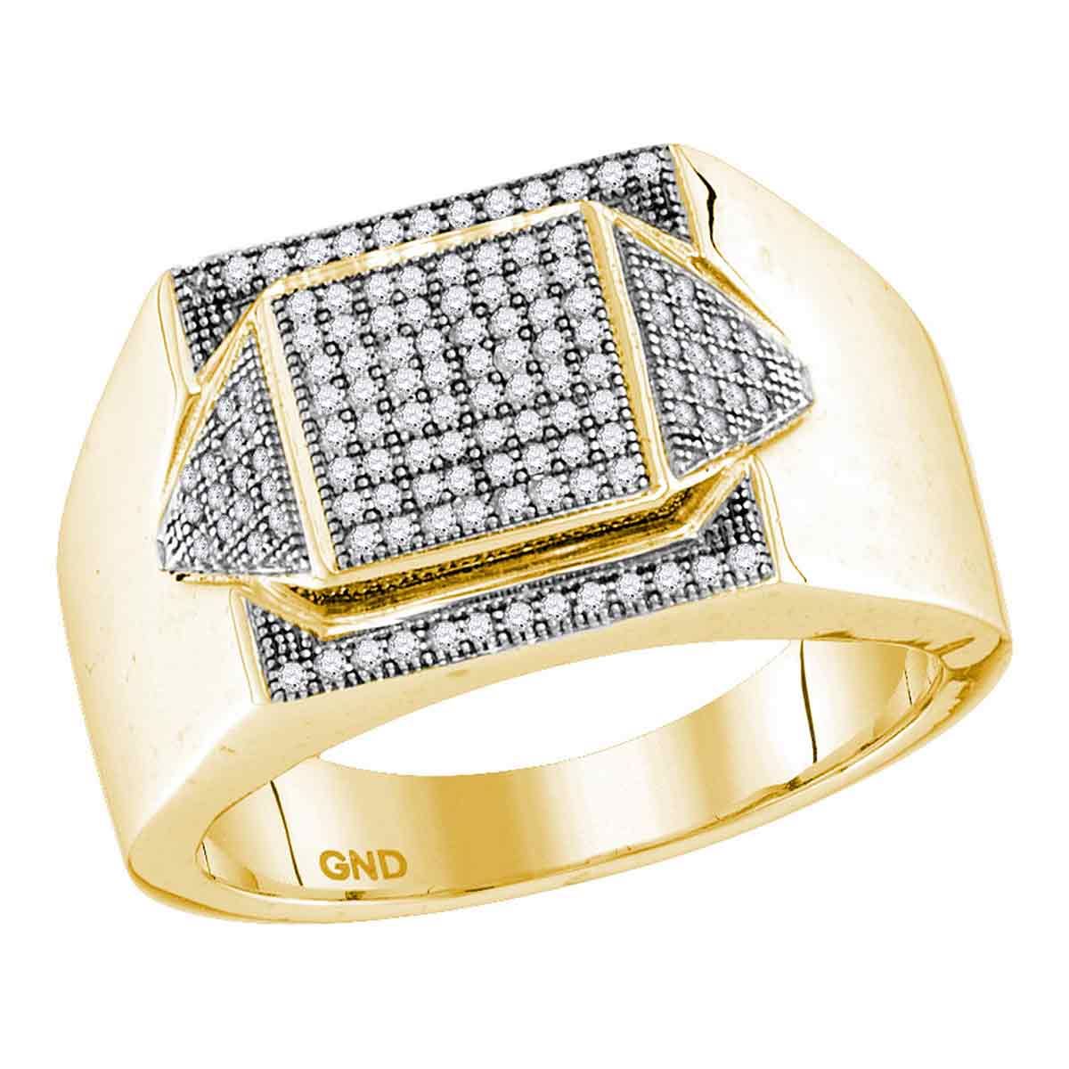 REF-44F9N- SKU: GD85899 ---- 0.35 CTW Mens Diamond Square Cluster Ring 10KT Yellow Gold