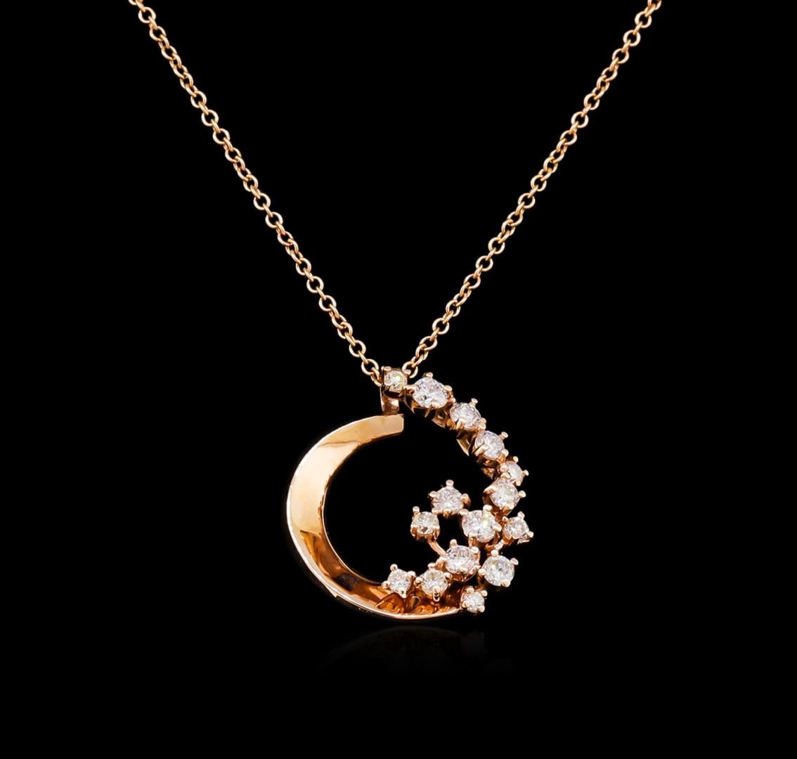 One pendant with chain featuring: 14KT rose gold weighing approximately 2.82 grams containing diamonds with a total weight of 0.35ct.