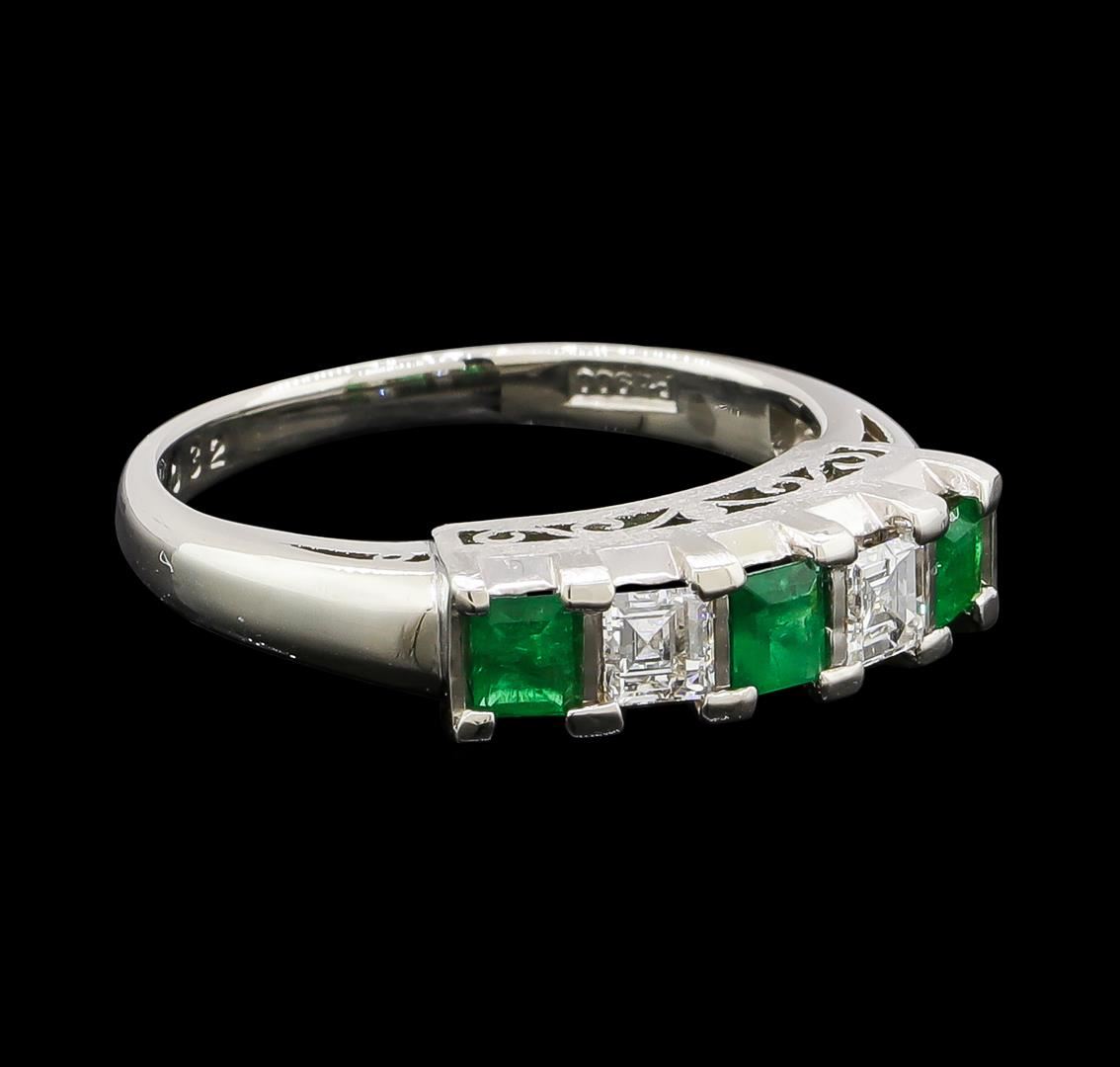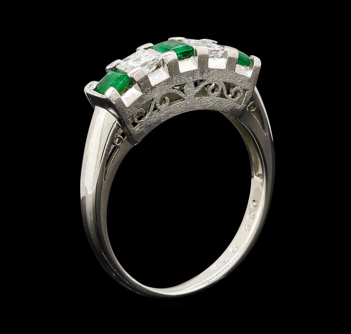 One ring featuring: Platinum containing Emerald with a total weight of 0.35ct and Diamonds with a total weight of 0.32ct. Total Weight of Ring: 4.6 grams.