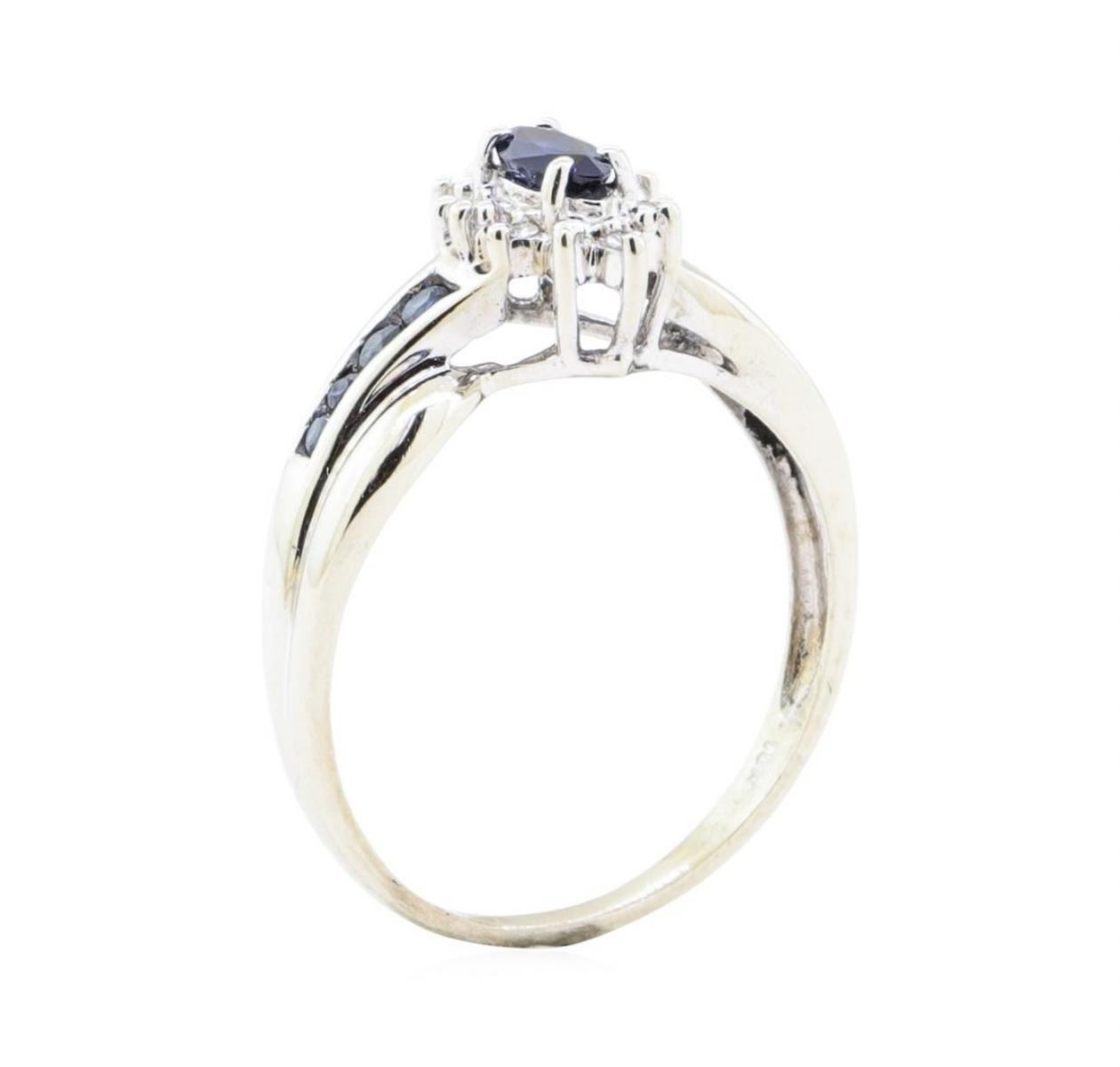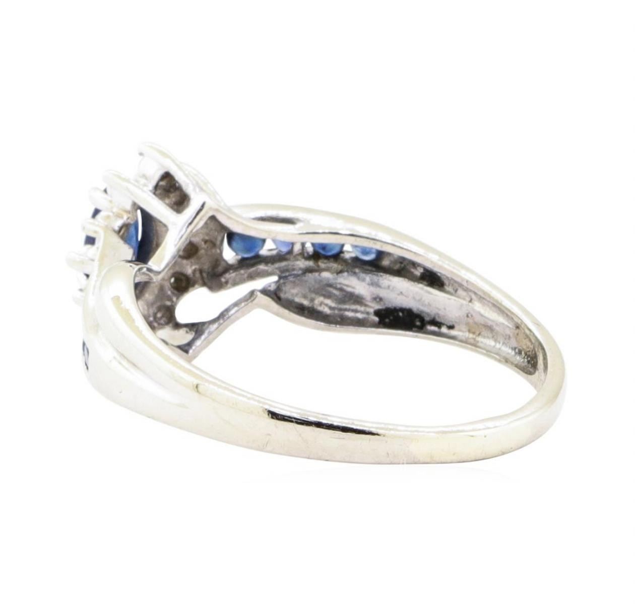 One designer bypass ring with a halo featuring: 10KT white gold weighing 2.7 grams containing sapphires weighing 0.30ctw and diamonds weighing 0.05ctw.