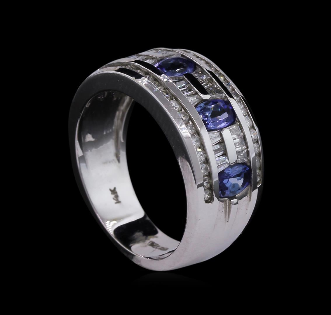 One ring featuring: 14KT white gold weighing 7.00 grams containing 4 tanzanites with a total weight of 0.35ct and diamonds with a total weight of 0.65ct.