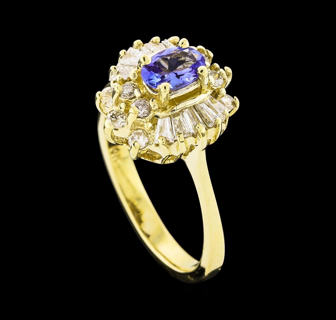 One ring: 14KT yellow gold weighing 4.00 grams containing on center tanzanite weighing 0.35ct and diamonds weighing 0.75ctw.