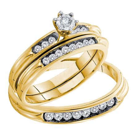 REF-64X4M ---- 0.35CT Diamond Trio Set 14KT Ring Yellow Gold - SKU: GD 54930