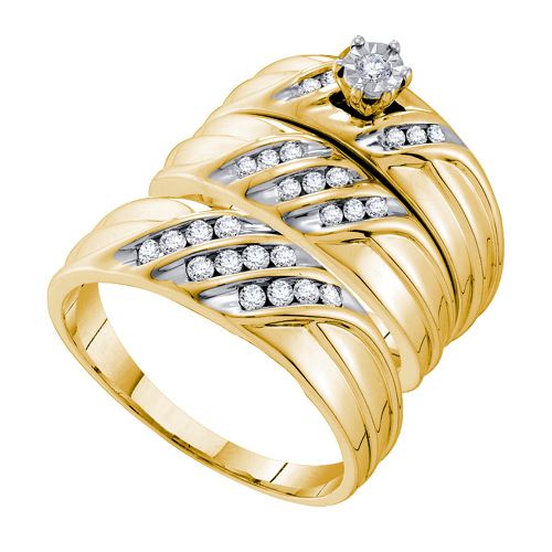 REF-105Y9Z ---- 0.35CT Diamond Trio Set 14KT Ring Yellow Gold - SKU: 54924