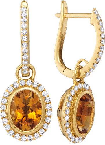 REF-139A9X ---- 0.35CT Diamond and 1CT Citrine Anniversary 14KT Earrings Yellow Gold - SKU: 105105