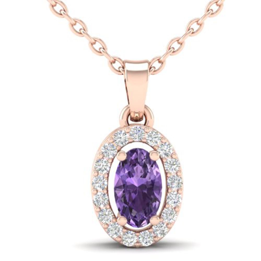 REF-23M2G - SKU: 21310 ---- 0.36 ctw Amethyst & Micro Pave VS/SI Diamond Necklace 14k Rose Gold