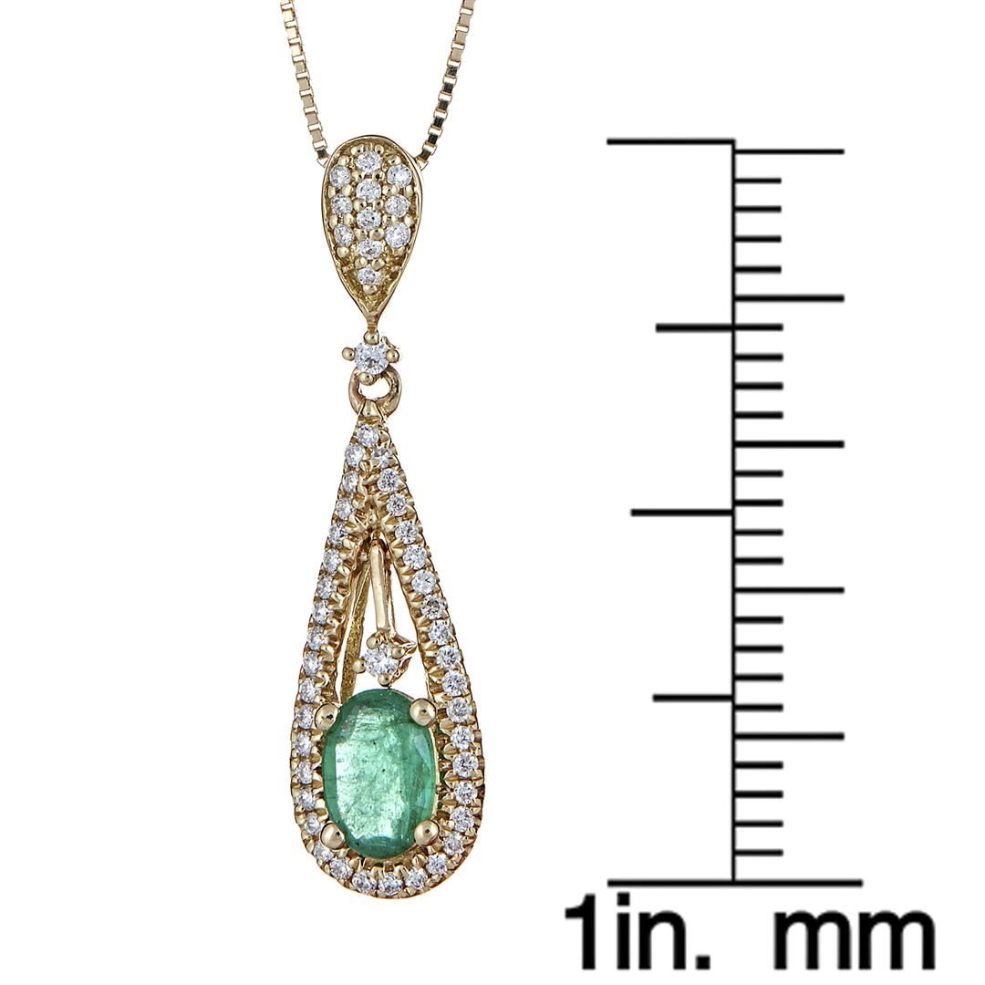 One pendant with chain featuring: 18KT yellow gold weighing 1.6 grams containing one brilliant cut emerald with a total weight of 0.36 ct and diamonds weighing a total of 0.15 ctw.