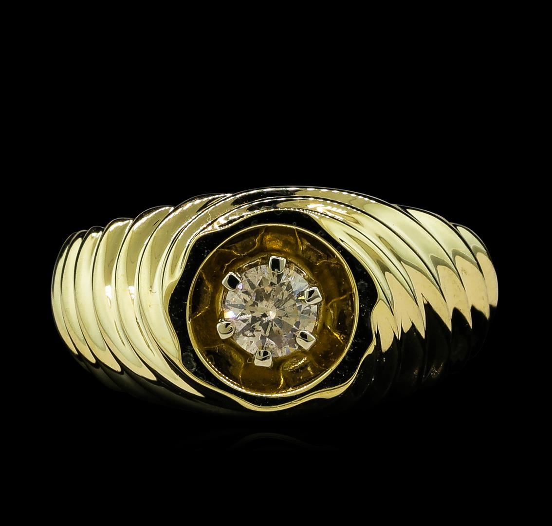 One Diamond Ring including: 14KT Yellow Gold with a total weight of 7.7 grams and Diamonds with a total weight of 0.37 ctw.
