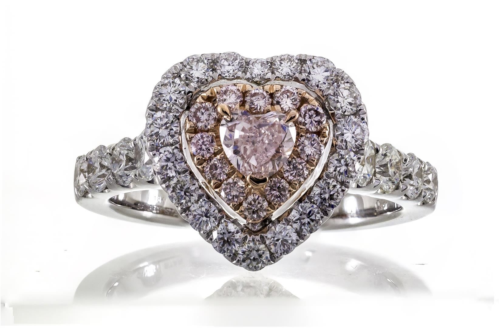 One ring featuring: 18KT Two-Tone Gold weighing 6.54 grams containing one heart cut Fancy Pink Diamond with a total weight of 0.37 ct and diamonds weighing a total of 1.40 ctw. GIA Appraised.