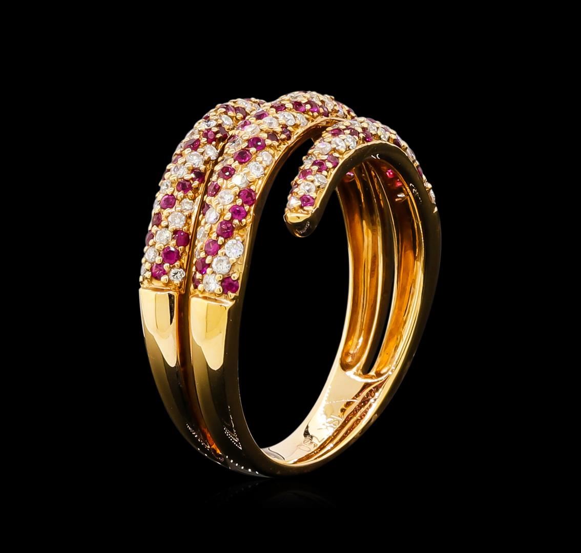 One ring featuring: 18KT yellow gold weighing 4.82 grams containing rubies with a total weight of 0.37ct and side diamonds with a total weight of 0.35ct.