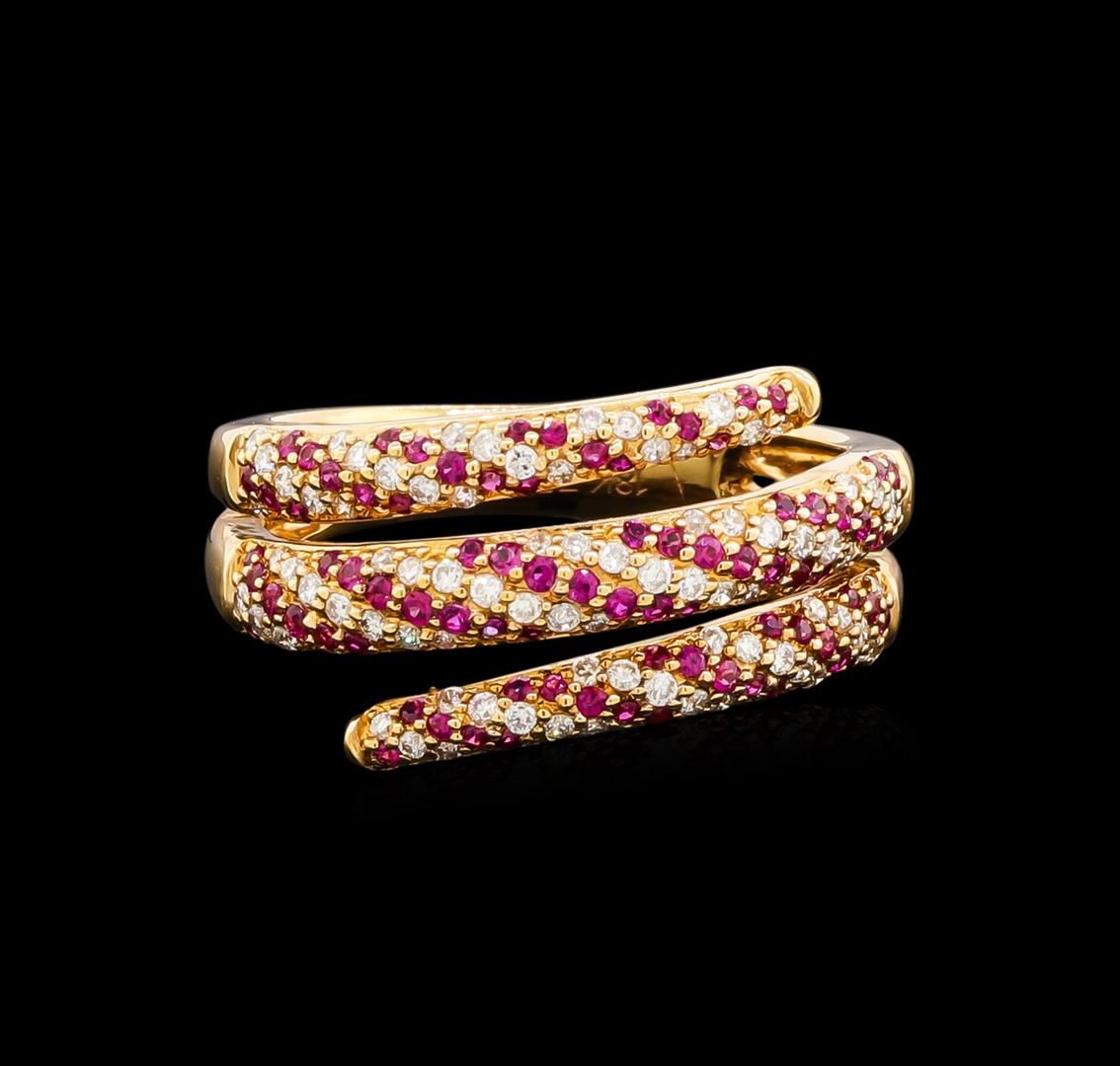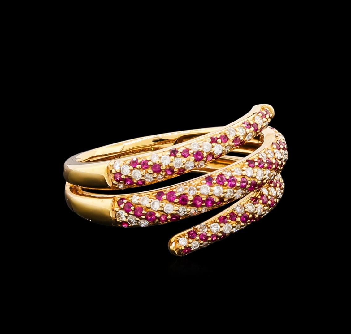 One ring featuring: 18KT yellow gold weighing 4.82 grams containing rubies with a total weight of 0.37ct and side diamonds with a total weight of 0.35ct.