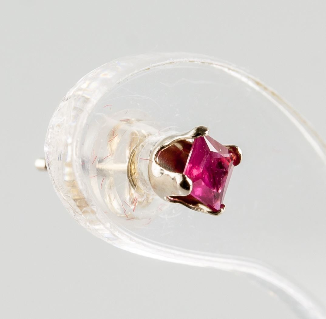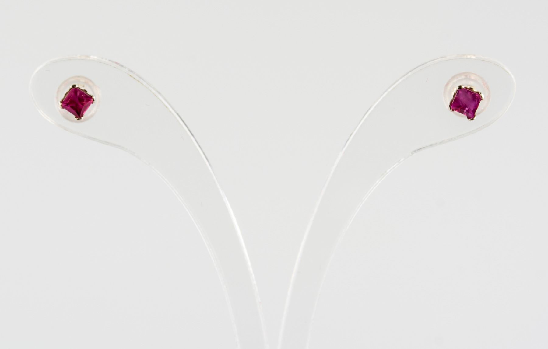 Stamped 14k yellow gold stud earrings. Set with 0.37ct square cut rubies. Retail value $300.