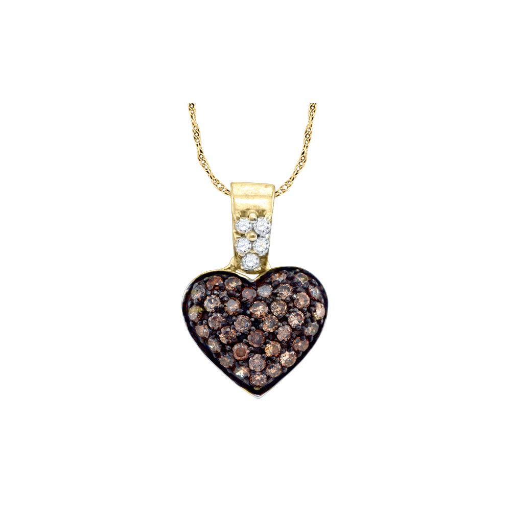 REF-24K2W ---- 0.38 CTW Cognac-brown Colored Cluster Diamond Heart Pendant 10K Yellow Gold - SKU: GD76843