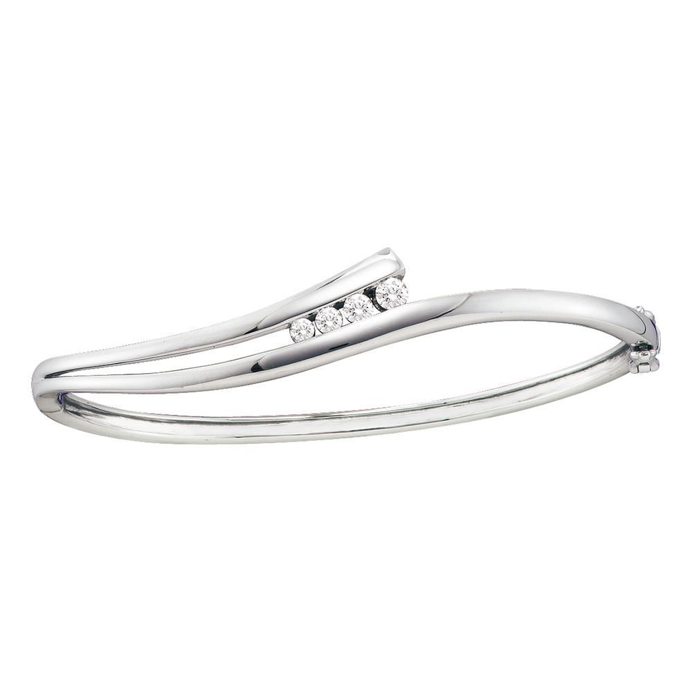 REF-134W9K- SKU: GD39206 ---- 0.38 CTW Diamond Graduated Journey Bangle Bracelet 14KT White Gold