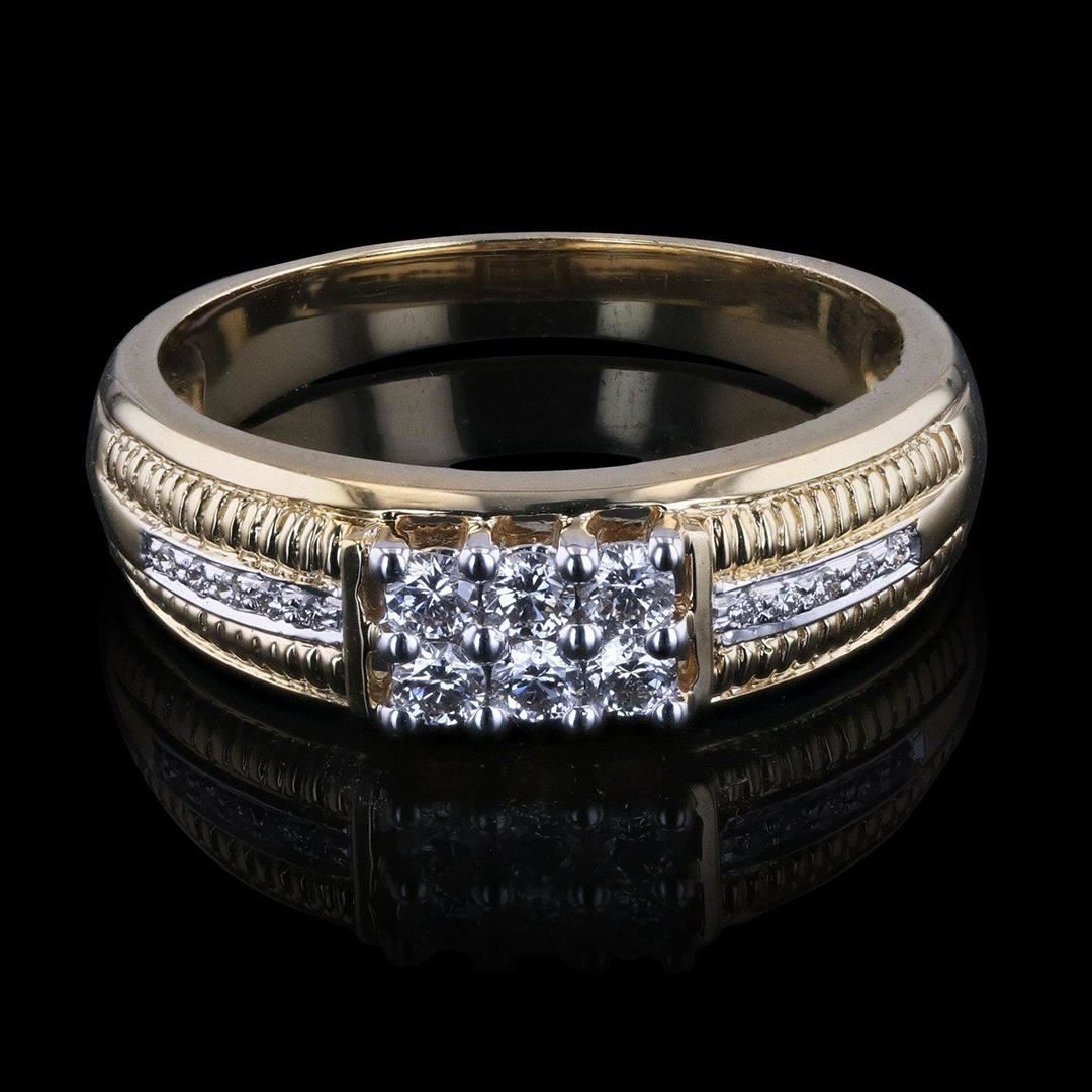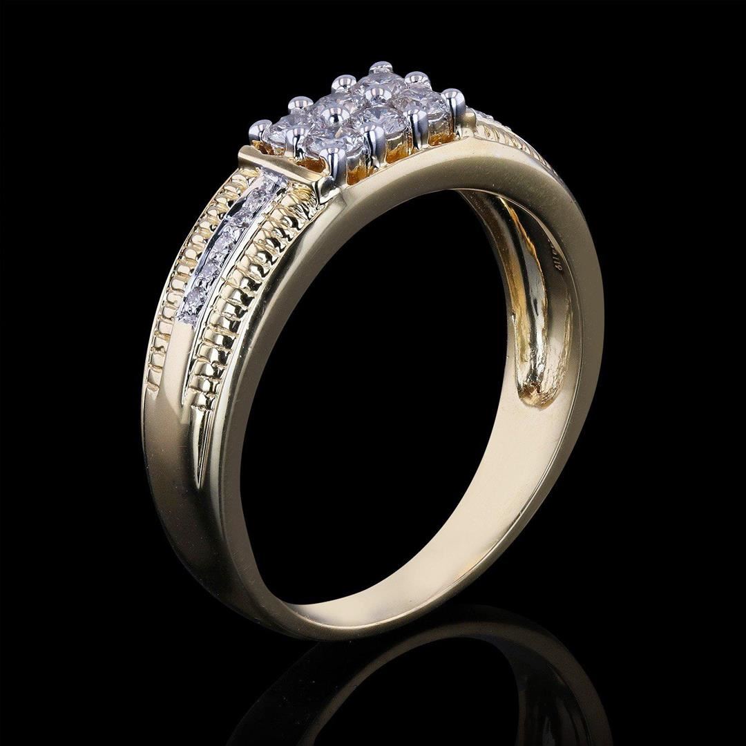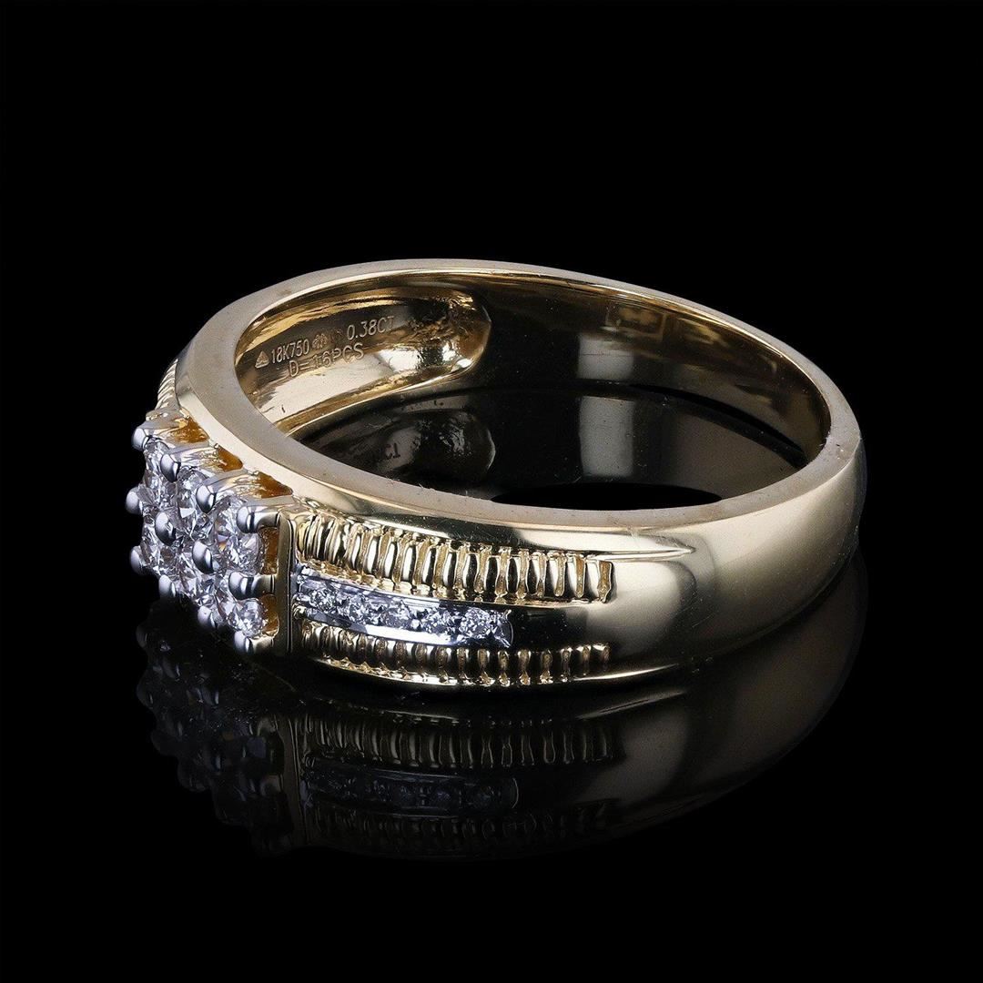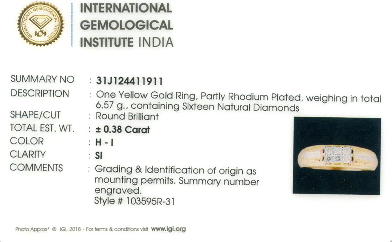 DESCRIPTION : One Yellow Gold Ring, Partly Rhodium Plated, weighing in total 6.57 g., containing Sixteen Natural Diamonds SHAPE/CUT : Round Brilliant TOTAL EST. WT. : 0.38 Carat COLOR : H â€" I CLARITY SI COMMENTS : Grading & Identification of origin