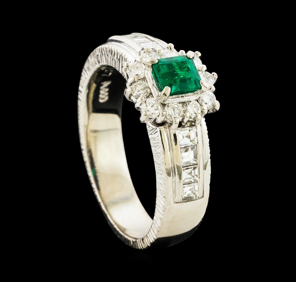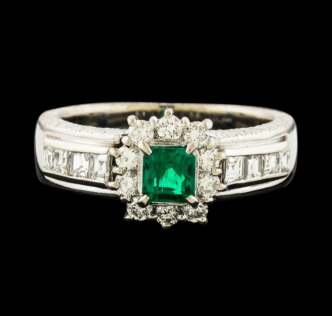 One ring featuring: Platinum containing Emerald with a total weight of 0.38ct and Diamonds with a total weight of 0.67ct. Total Weight of Ring: 9.7 grams.
