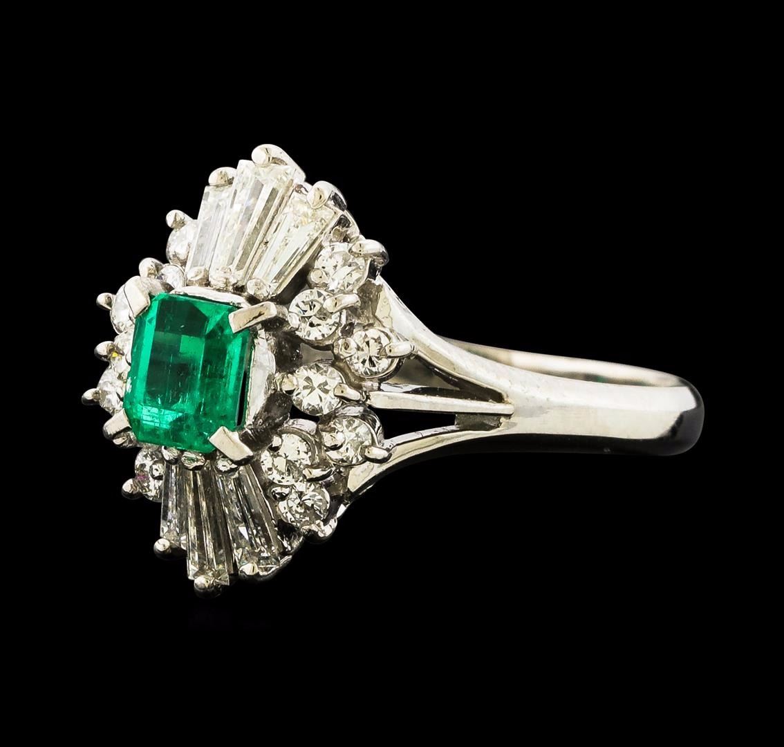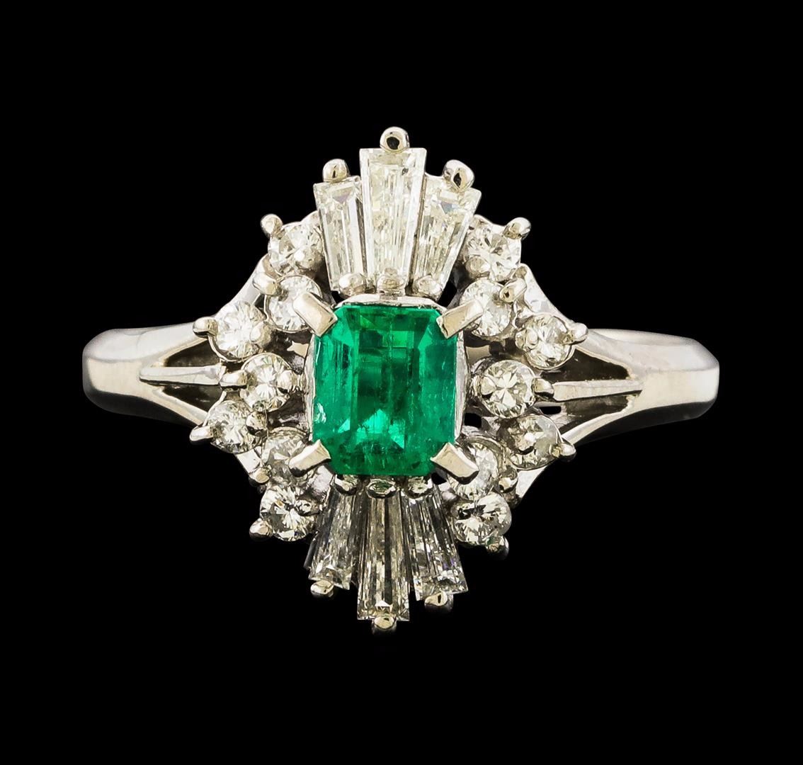 One ring featuring: Platinum containing Emerald with a total weight of 0.39ct and Diamonds with a total weight of 0.47ct. Total Weight of Ring: 4.5 grams.