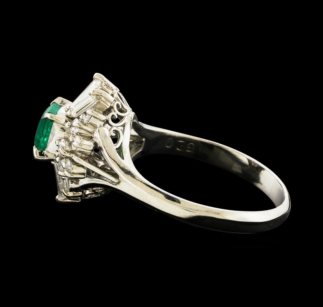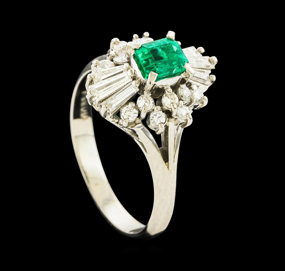 One ring featuring: Platinum containing Emerald with a total weight of 0.39ct and Diamonds with a total weight of 0.47ct. Total Weight of Ring: 4.5 grams.