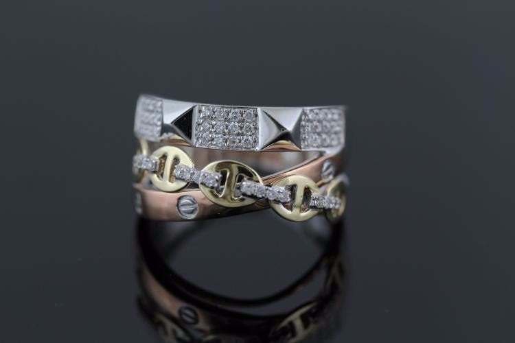0.3ctw Statement Diamond Ring 14k Two Tone |Shape:Round 1.2|Stone Count:52|Carat Weight:0.3|Color:G-H|Clarity: Si2-Si3|Shape: |MM Size:|Diamond Count:|Carat Weight:|Color:|Clarity:|Band Width:5|Ring Face Dimension(mm):11.2|Ring Height:5.3|Ring Size:6.5|Gram Weight:5.99