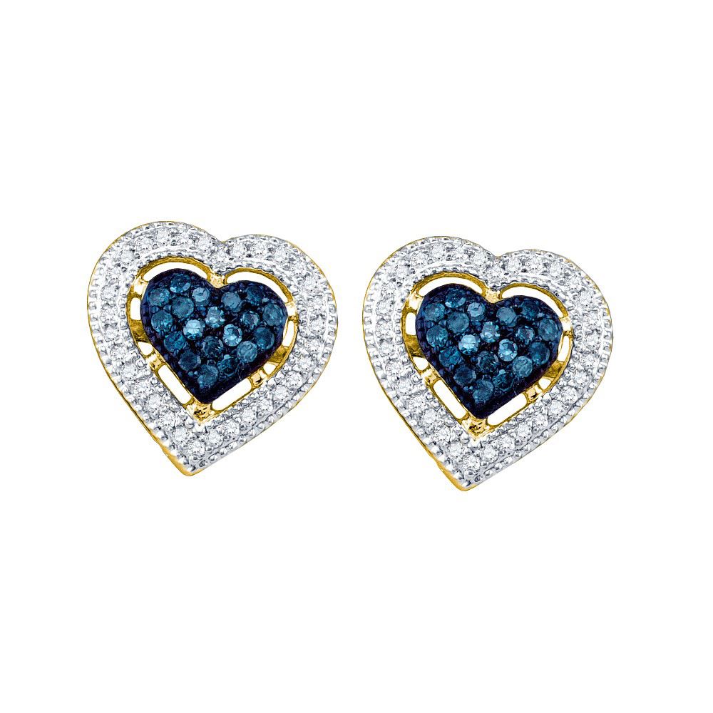 REF-40M2A ---- 0.4 CTW Blue Colored Diamond Heart Love Screwback Earrings 10K Yellow Gold - SKU: GD60785
