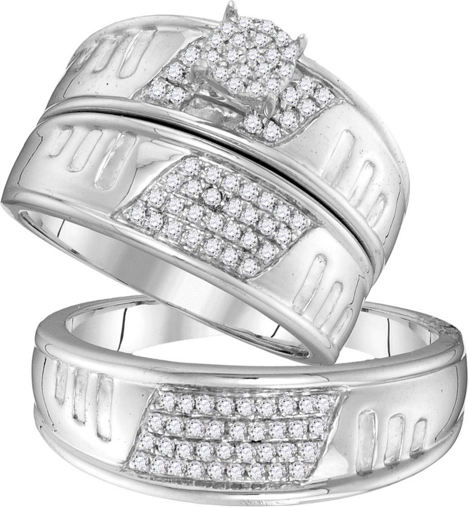 REF-66N2Y ---- 0.4 CTW His & Hers Natural Diamond Cluster Matching Bridal Ring 10K White Gold - SKU: GD104121