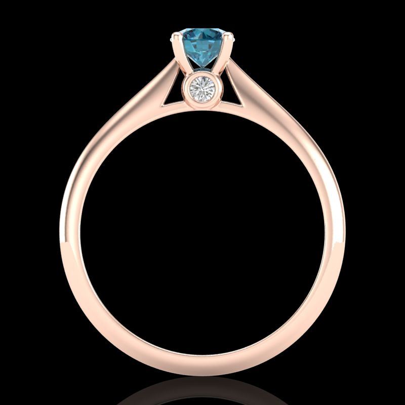 REF-80X2T -38182 ---- 0.4 CTW Intense Blue Diamond Solitaire Engagement Art Deco Ring 18K Rose Gold ---- Luxury Designer Brand Ring Appraised at $4,850 Certificate Number US38182  18k Rose gold,  Ring Size is 7, Ring measuring approx. Uniform, weighing in total approx. 2.6 grams. Made in the USA and is stamped 18k, Main stone 0.34 carat total weight containing 1 pieces of Intense Fancy Blue color with SI quality Round shape cut Diamond , Stone #2 0.06 carat total weight containing 2 pieces of H-I color with  VS/SI quality Round shape cut Diamond