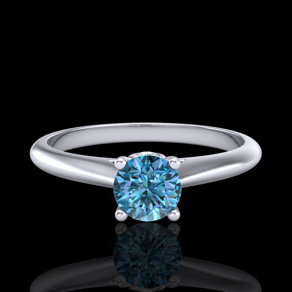 REF-60N2F - SKU: 38181 ---- 0.4 ctw Intense Blue Diamond Engagment Art Deco Ring 18k White Gold