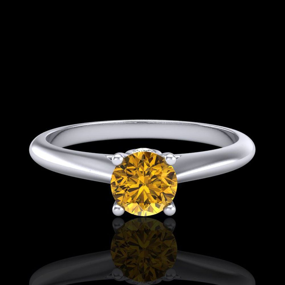 REF-60W2H - SKU: 38183 ---- 0.4 ctw Intense Fancy Yellow Diamond Art Deco Ring 18k White Gold
