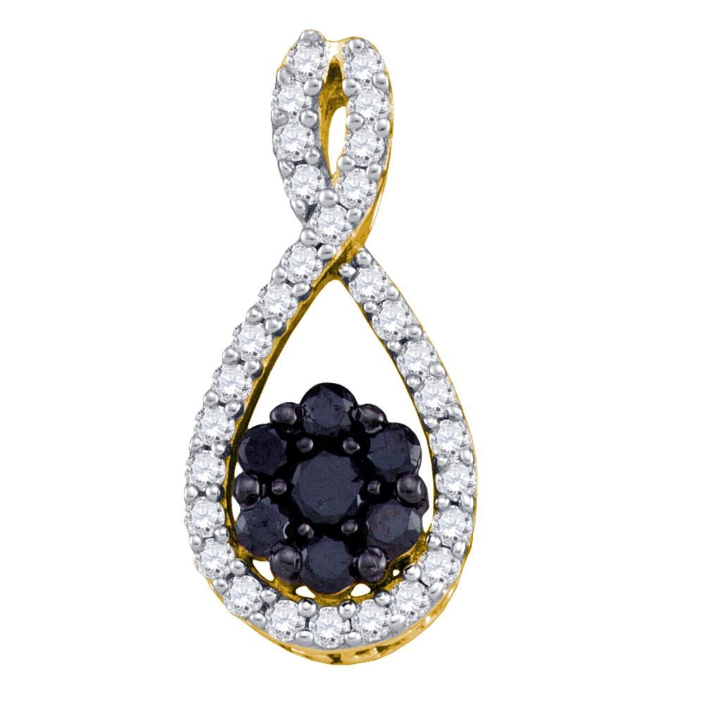 REF-22K4W- SKU: GD73611 ---- 0.40 CTW Black Color Diamond Teardrop Cluster Pendant 10KT Yellow Gold