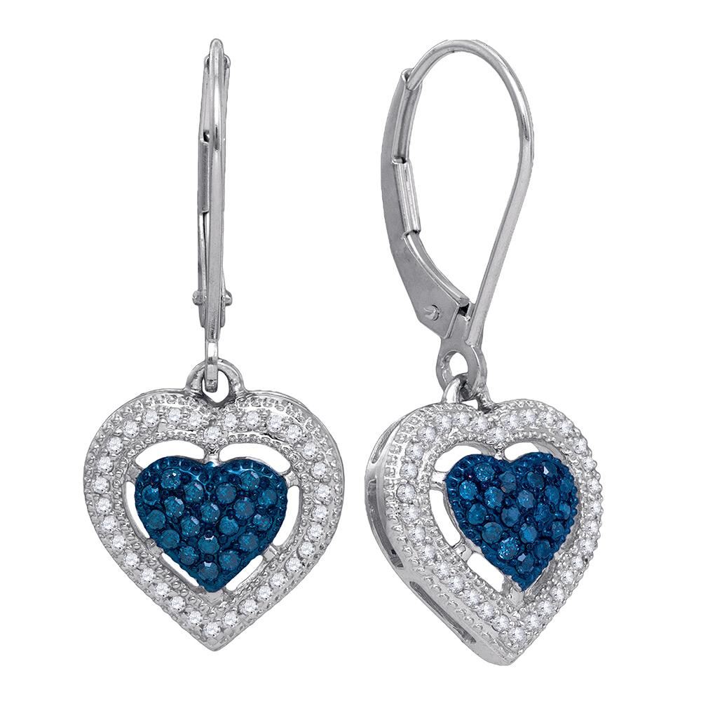 REF-36N2F- SKU: GD60782 ---- 0.40 CTW Blue Color Diamond Heart Dangle Earrings 10KT White Gold