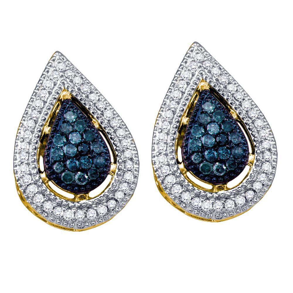 REF-34F4N- SKU: GD60787 ---- 0.40 CTW Blue Color Diamond Teardrop Cluster Earrings 10KT Yellow Gold
