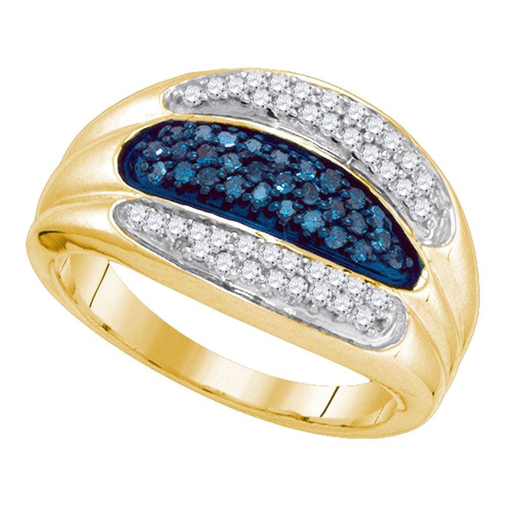REF-31F4N- SKU: GD87325 ---- 0.40 CTW Blue Color Diamond Triple Row Ring 10KT Yellow Gold