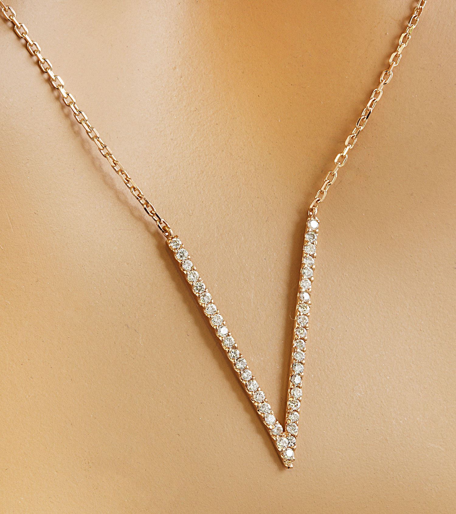 0.40 CTW Diamond 14K Rose Gold "V" Necklace