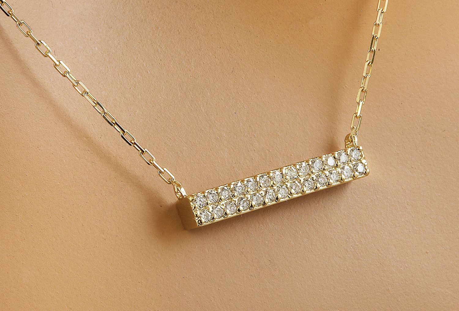 0.40 CTW Diamond 18K Yellow Gold Double Bar Necklace