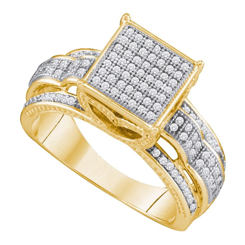REF-44X9Y- SKU: GD64821 ---- 0.40 CTW Diamond Square Cluster Bridal Engagement Ring 10KT Yellow Gold