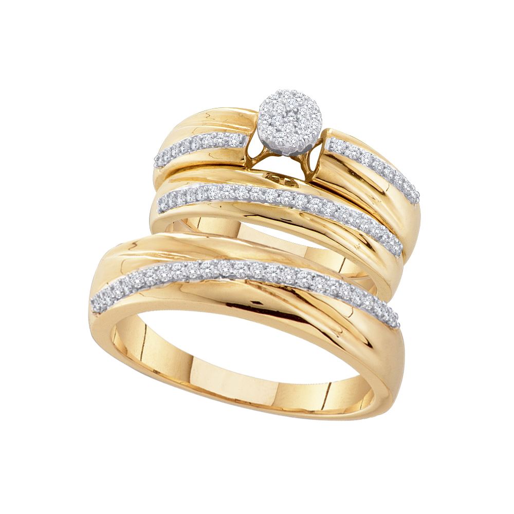 REF-71K9W- SKU: GD50862 ---- 0.40 CTW His & Hers Diamond Cluster Matching Bridal Ring 10KT Yellow Gold