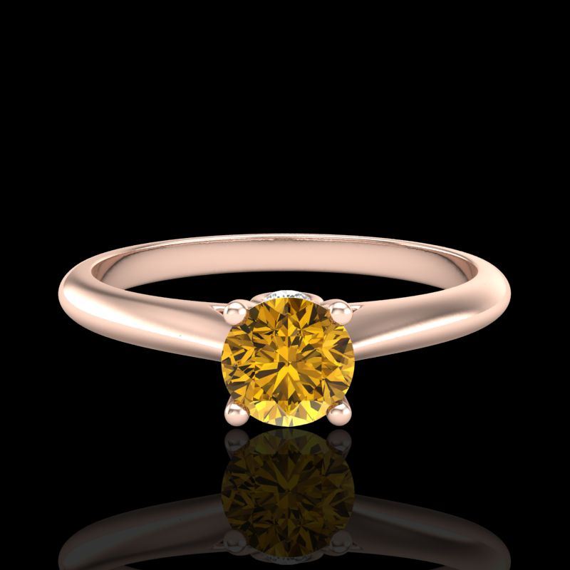 0.40 CTW Intense Fancy Yellow Diamond Engagement Art Deco Ring 18K Rose Gold ---- Luxury Designer Brand Ring Appraised Retail Price at $4,850 ---- SKU Number US38184 18k Rose gold Ring Size is 7, Ring measuring approx. Uniform, weighing in total approx. 2.6 grams. Made in the USA and is stamped 18k, Main stone 0.34 carat total weight containing 1 pieces of Intense Fancy Yellow color with SI quality Round shape cut Diamond , Stone #2 0.06 carat total weight containing 2 pieces of H-I color with VS/SI quality Round shape cut