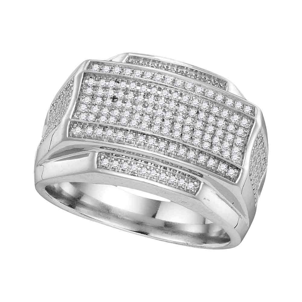 REF-59Y9X- SKU: GD109950 ---- 0.40 CTW Mens Pave-set Diamond Rectangle Cluster Ring 10KT White Gold