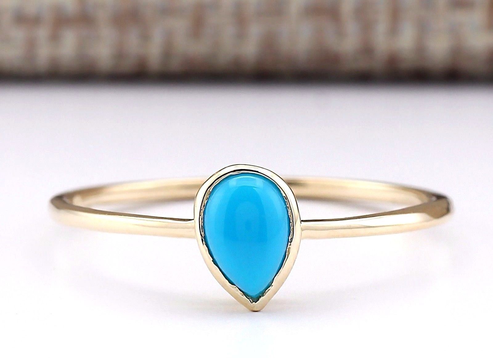.40 CTW Natural Turquoise Ring In 18K Yellow Gold