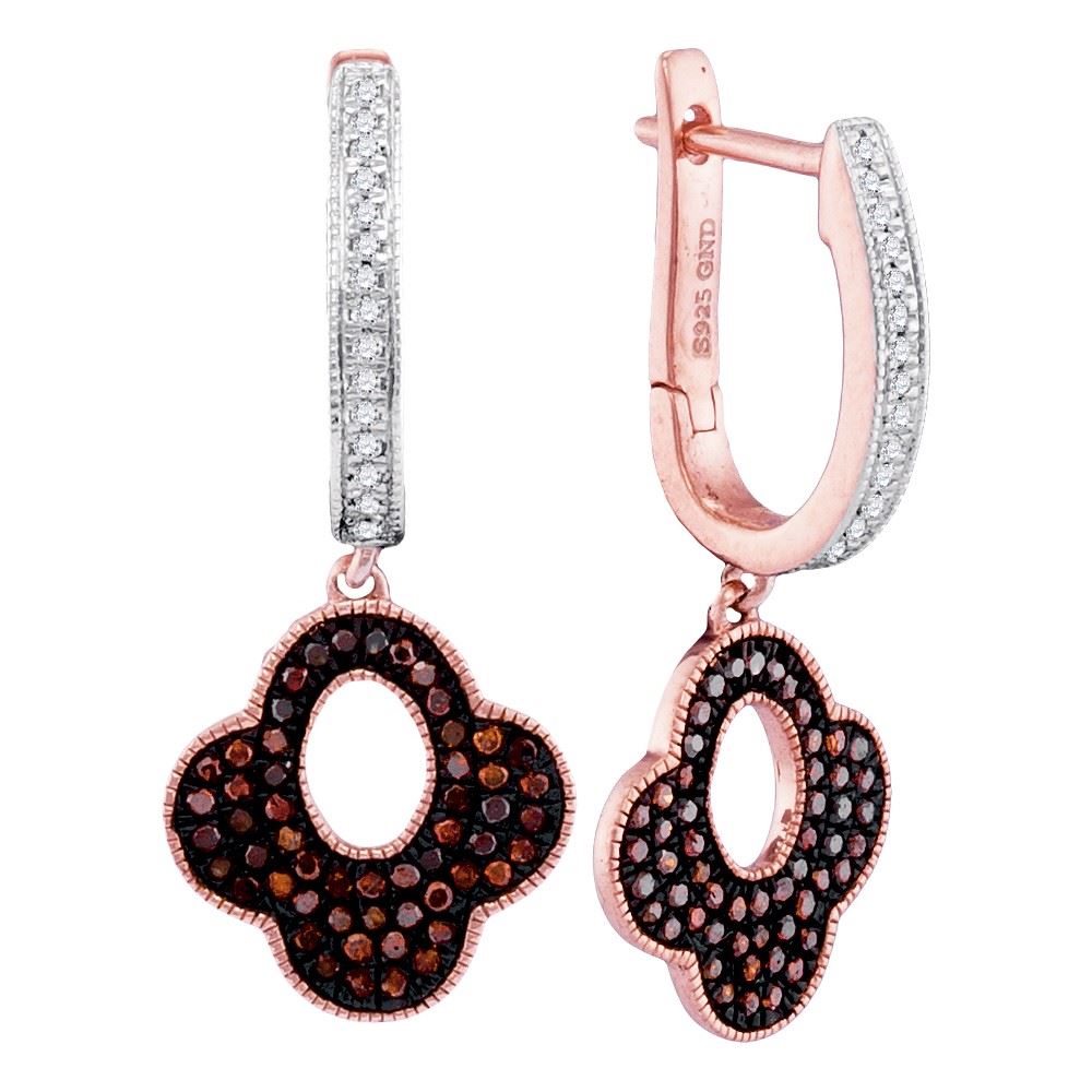 REF-52X4Y- SKU: GD97901 ---- 0.40 CTW Red Color Diamond Dangle Hoop Earrings 10KT Rose Gold