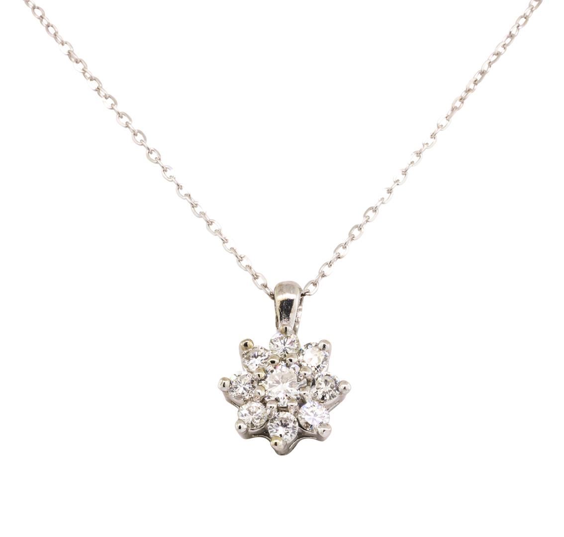 One pendant with a sixteen inch long 1mm diamond cut cable link chain featuring: 14KT white gold weighing 2.0 grams containing diamonds weighing 0.40ctw.