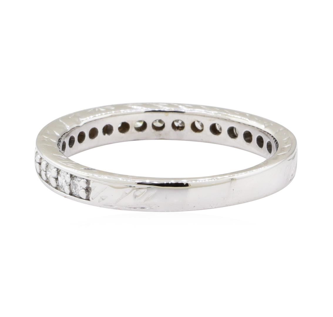 One ring with hand engraved detailing featuring: 14KT white gold weighing 2.8 grams containing diamonds weighing 0.40 ctw.