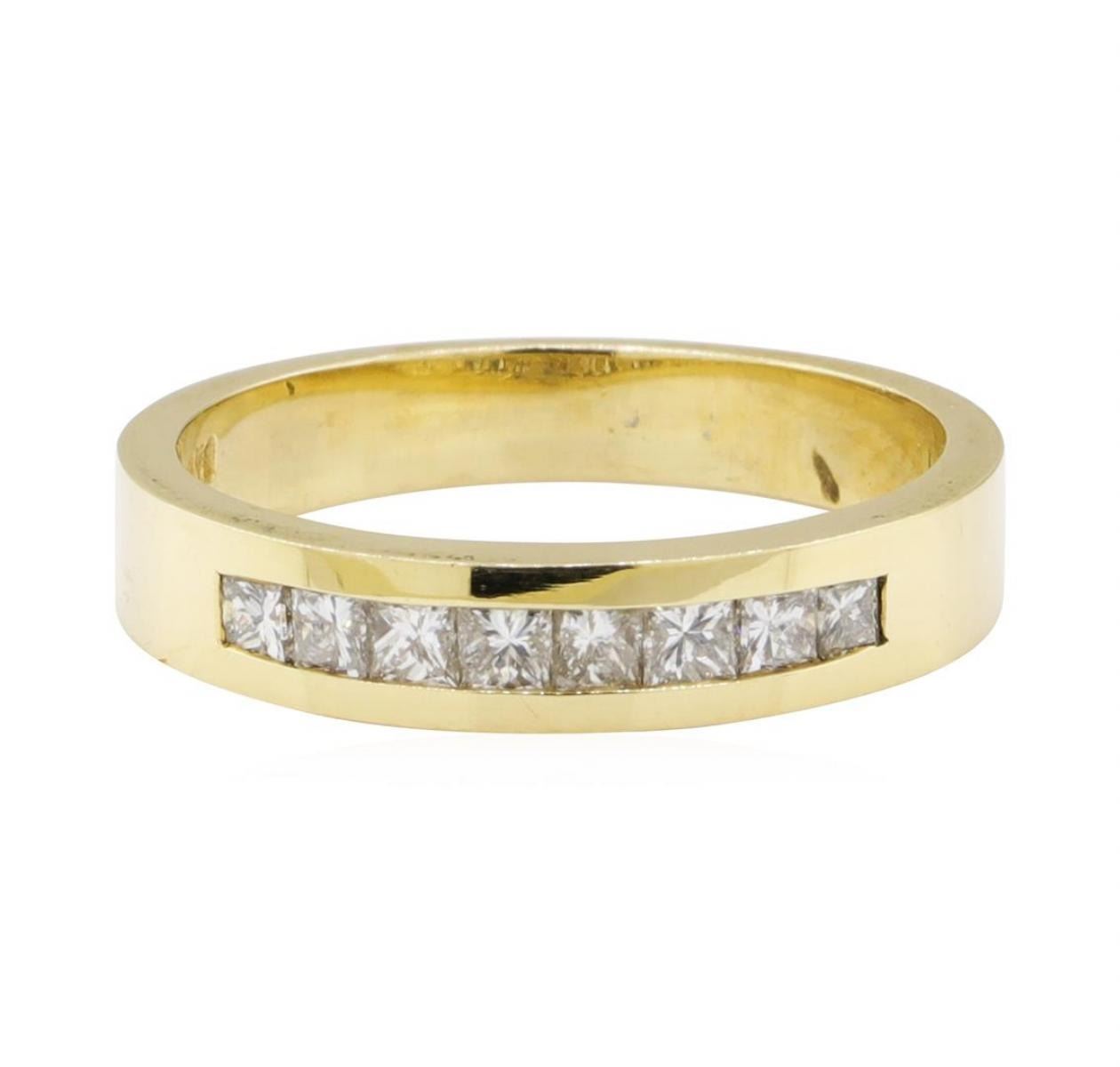 One ring featuring: 14KT yellow gold weighing 3.3 grams containing channel set princess cut diamonds weighing 0.40ctw.