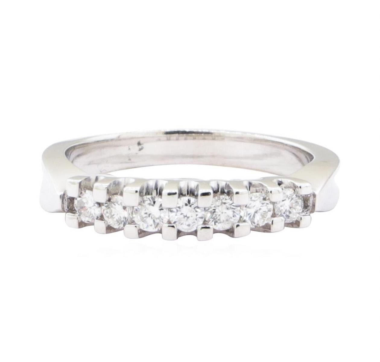 One seven stone, straight line ring featuring: 14KT white gold weighing 4.3 grams containing diamonds weighing 0.40ctw.