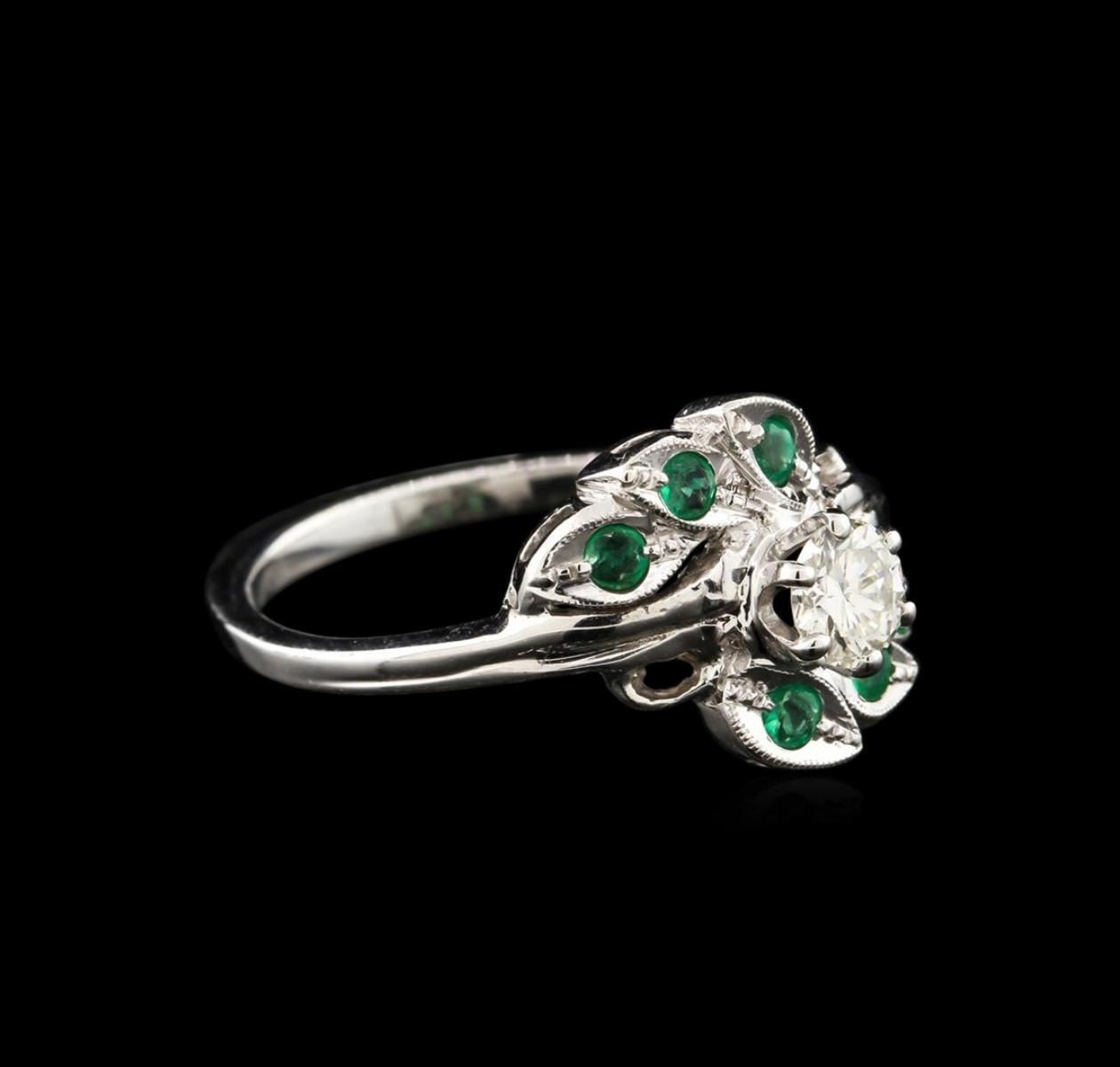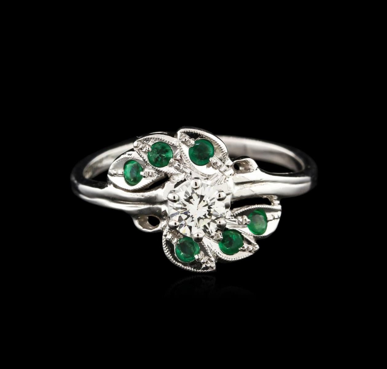 One ring featuring: 14KT white gold weighing 3.60 grams containing one diamond center stone with a total weight of 0.40 ct and six emeralds with a total weight of 0.20 ct.