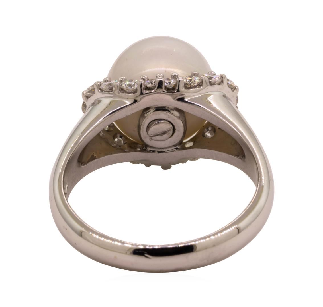 One lady's ring featuring: 18KT white gold weighing 7.6 grams containing one 10mm round pearl and diamonds weighing 0.40ctw.
