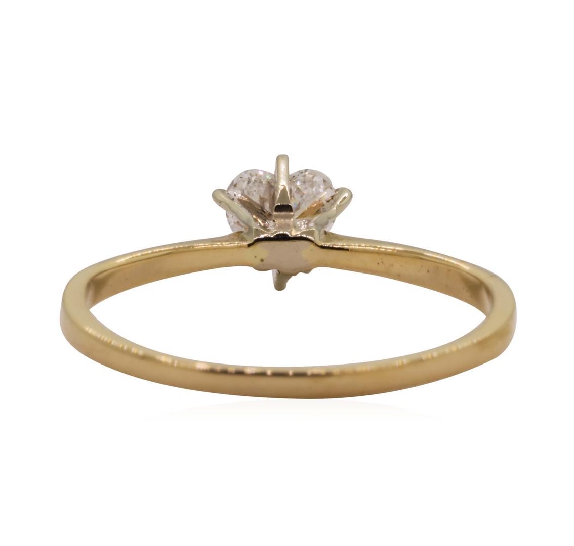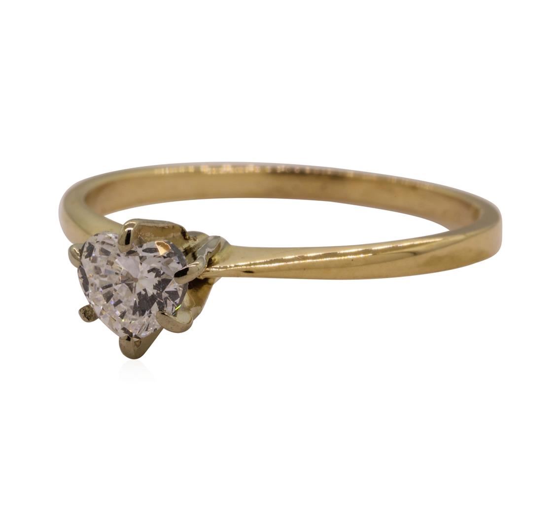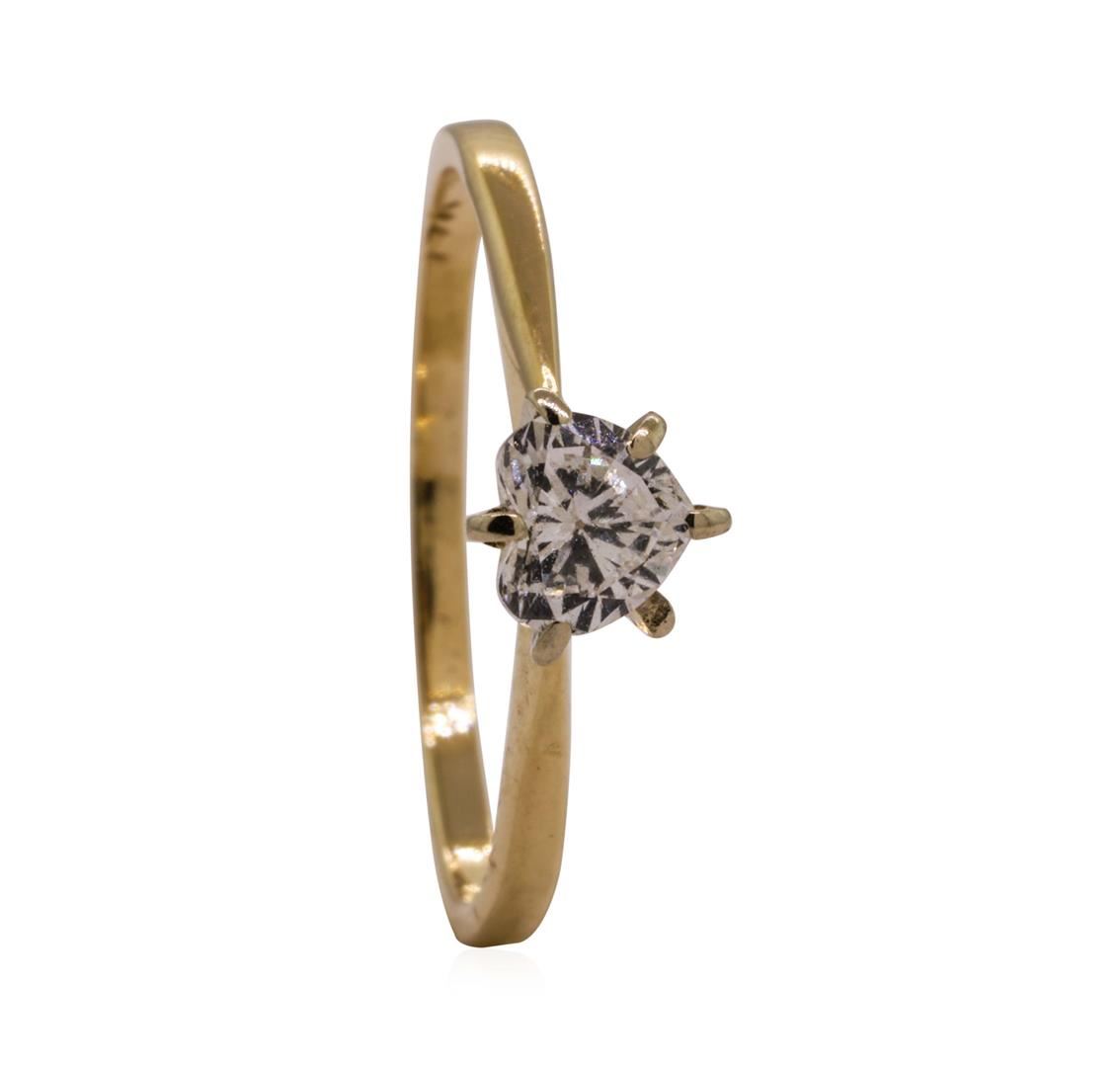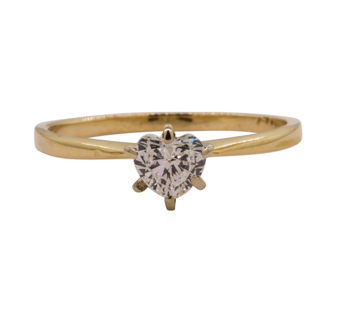 One lady's ring featuring: 14KT yellow gold weighing 1.4 grams containing one heart shaped diamond weighing 0.40ctw.